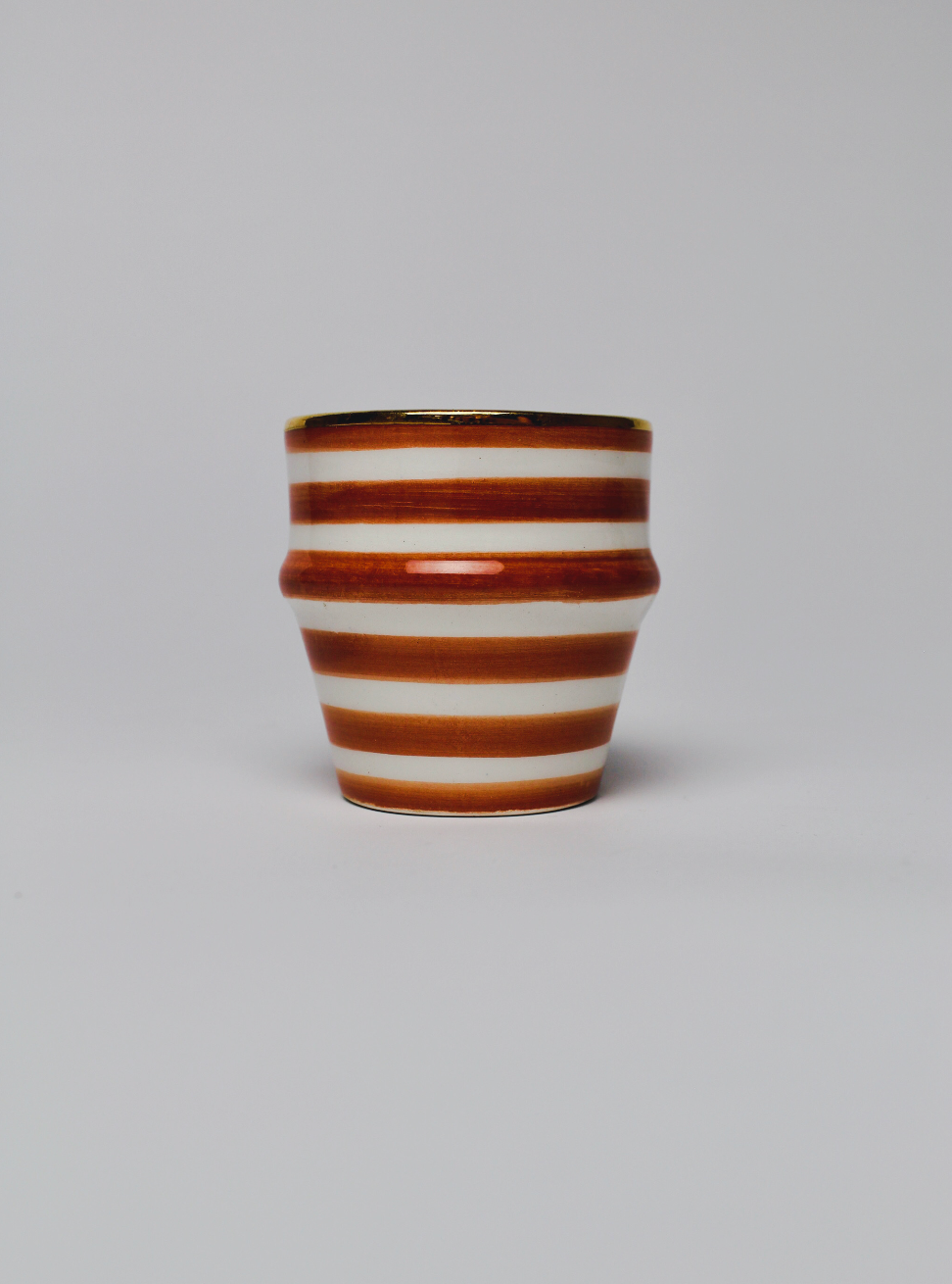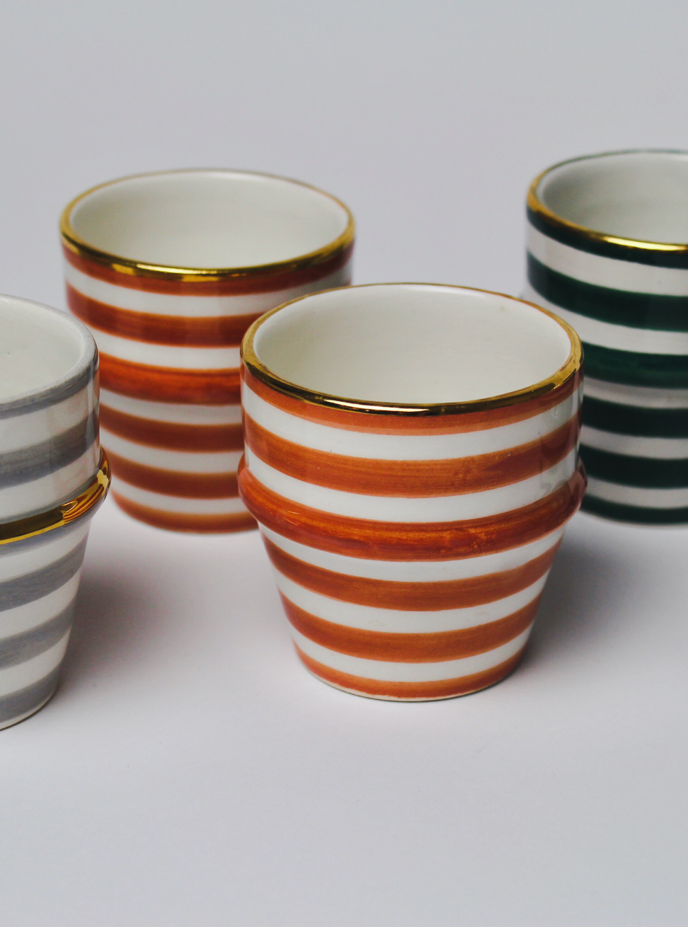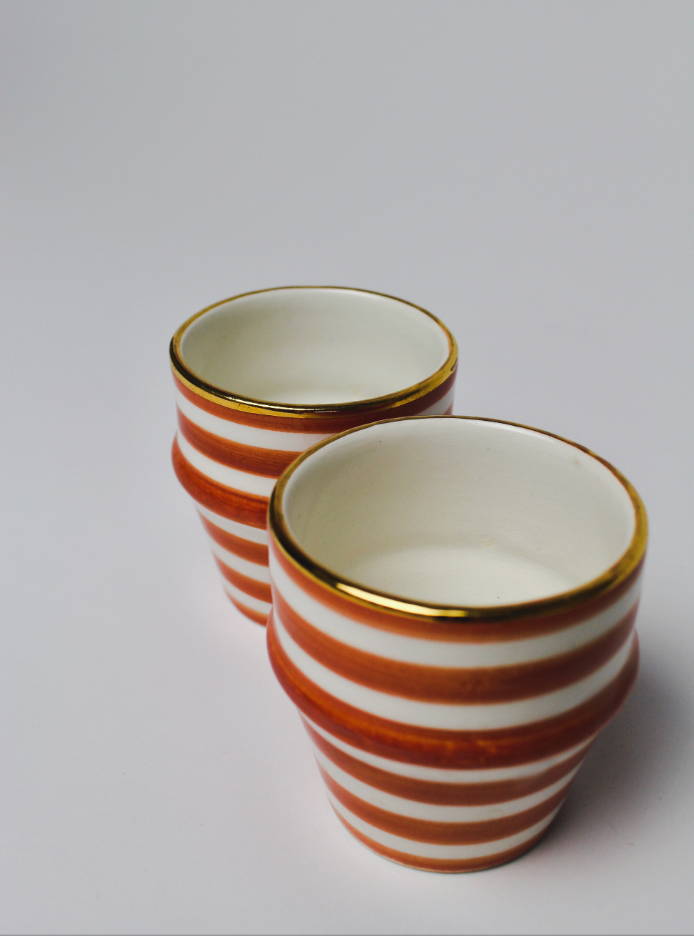 Our Bambino Espresso Cup is the perfect addition to your morning groove. Its striking burnt orange hue catches the eye wherever it is placed and the smooth painted bands lend visual interest.